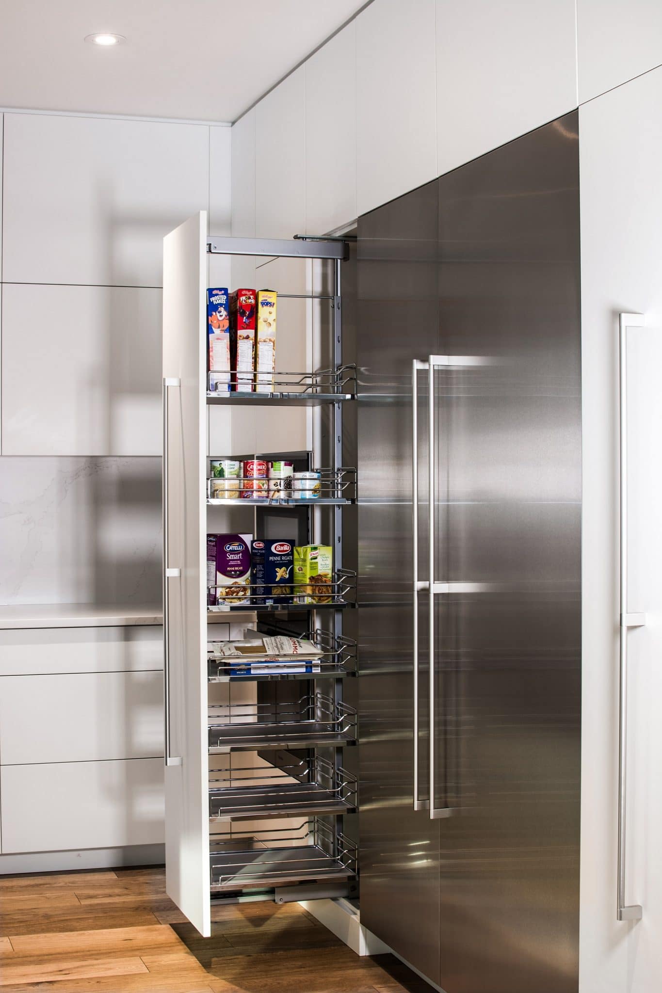 A modern space, designed to encompass functionality and efficiency throughout all aspects of the kitchen design.