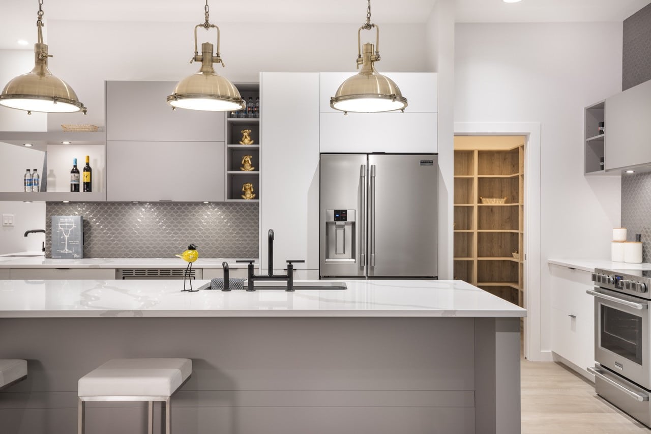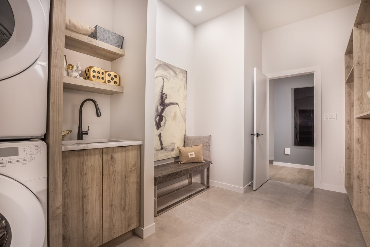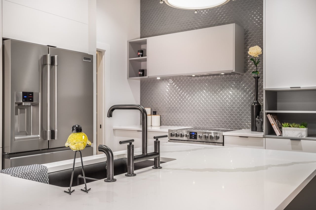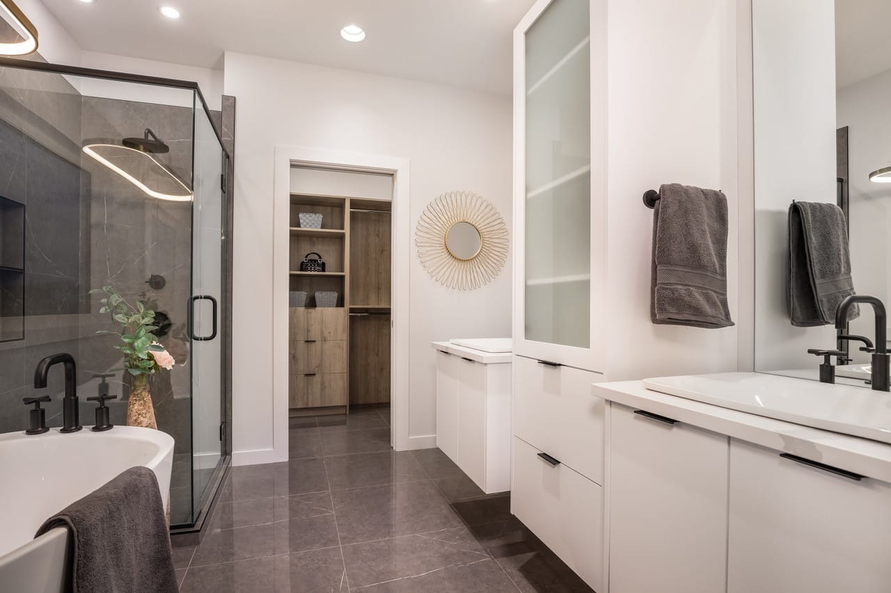 The 7 Tanager Residence showcases Netley Millwork’s modern craftsmanship with a seamless blend of style and functionality. The kitchen anchors the home with sleek cabinetry, expansive quartz countertops, and a striking island illuminated by bold pendant lighting, while the open layout flows naturally into the dining and living areas. A feature fireplace wall and soft-toned floors bring warmth and sophistication to the main spaces, complemented by abundant natural light. Bedrooms offer calm, minimalist retreats, and spa-inspired bathrooms feature floating vanities, modern fixtures, and refined tilework. Throughout the home, custom storage solutions and carefully chosen finishes create a cohesive, elegant environment that feels both inviting and contemporary.